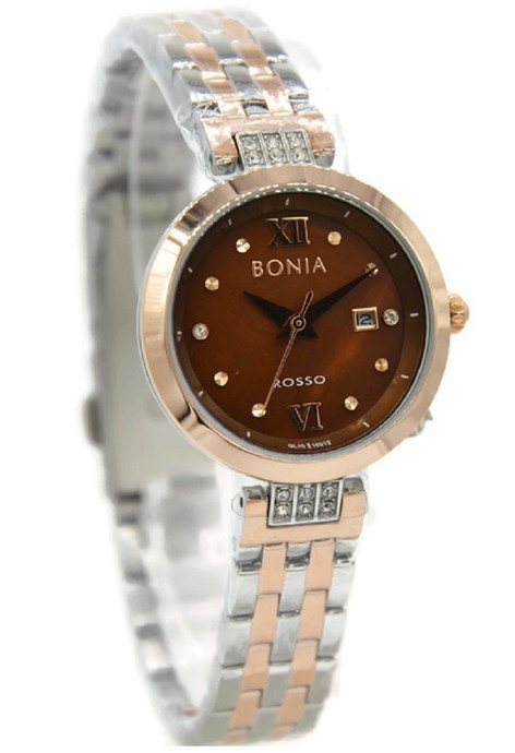 Gallery jam tangan wanita Bonia Rosso BNB10312-2643 Jam Tangan Wanita Stainless Steel Silver Kombinasi Rosegold Plat Coklat