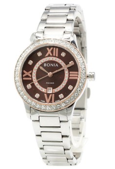Penawaran Menarik Bonia Rosso BNB10260-2343S Jam Tangan Wanita Stainless Steel Silver Plat Coklat sayang jika tidak dibeli