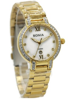 Promo Menarik Bonia Rosso BNB10273-2213S Jam Tangan Wanita Stainless Steel Gold Plat Putih ayo segera dibeli